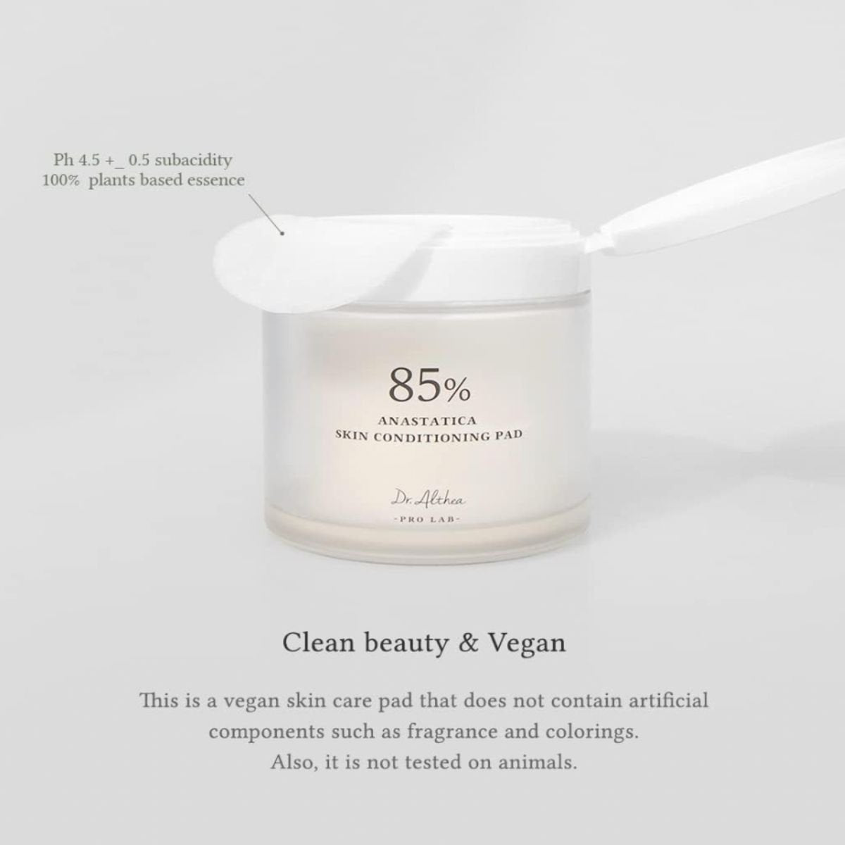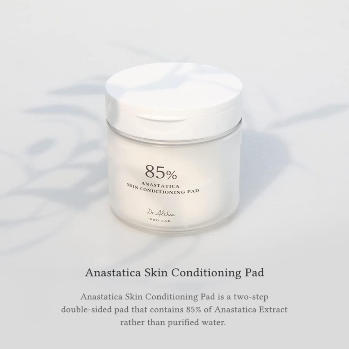 DR. ALTHEA Anastatica Skin Conditioning Pad contains 85% Anastatica extract to protect skin from environmental aggressors and soothe irritated skin. It also offers anti-aging and brightening benefits.
