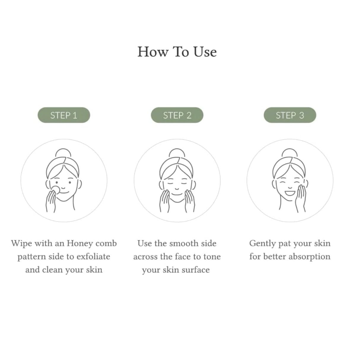 The soft cotton pad has two sides: a honeycomb side to deeply cleanse the skin's surface and a smooth side to moisturize the skin layers.