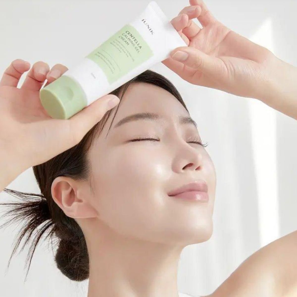iUnik Centella Calming Gel Cream is formulated with 70% Centella Asiatica leaf water, 10% Tea Tree leaf water and extracts of 6 different sprouts.