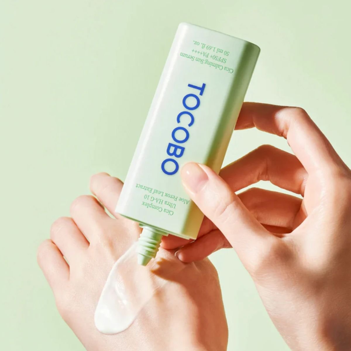 Cica Calming Sun Serum SPF50+ PA++++ 50mL is infused with low molecular weight fermented cica complex, 10-layer hyaluronic acid and cape aloe leaf extract to soothe and hydrate skin.