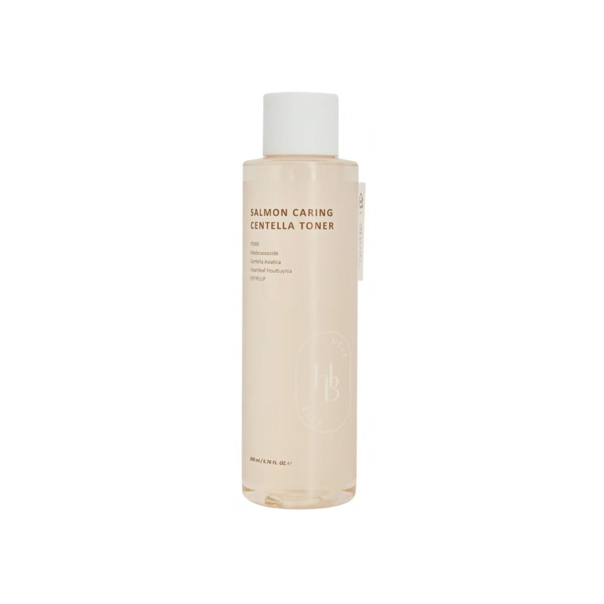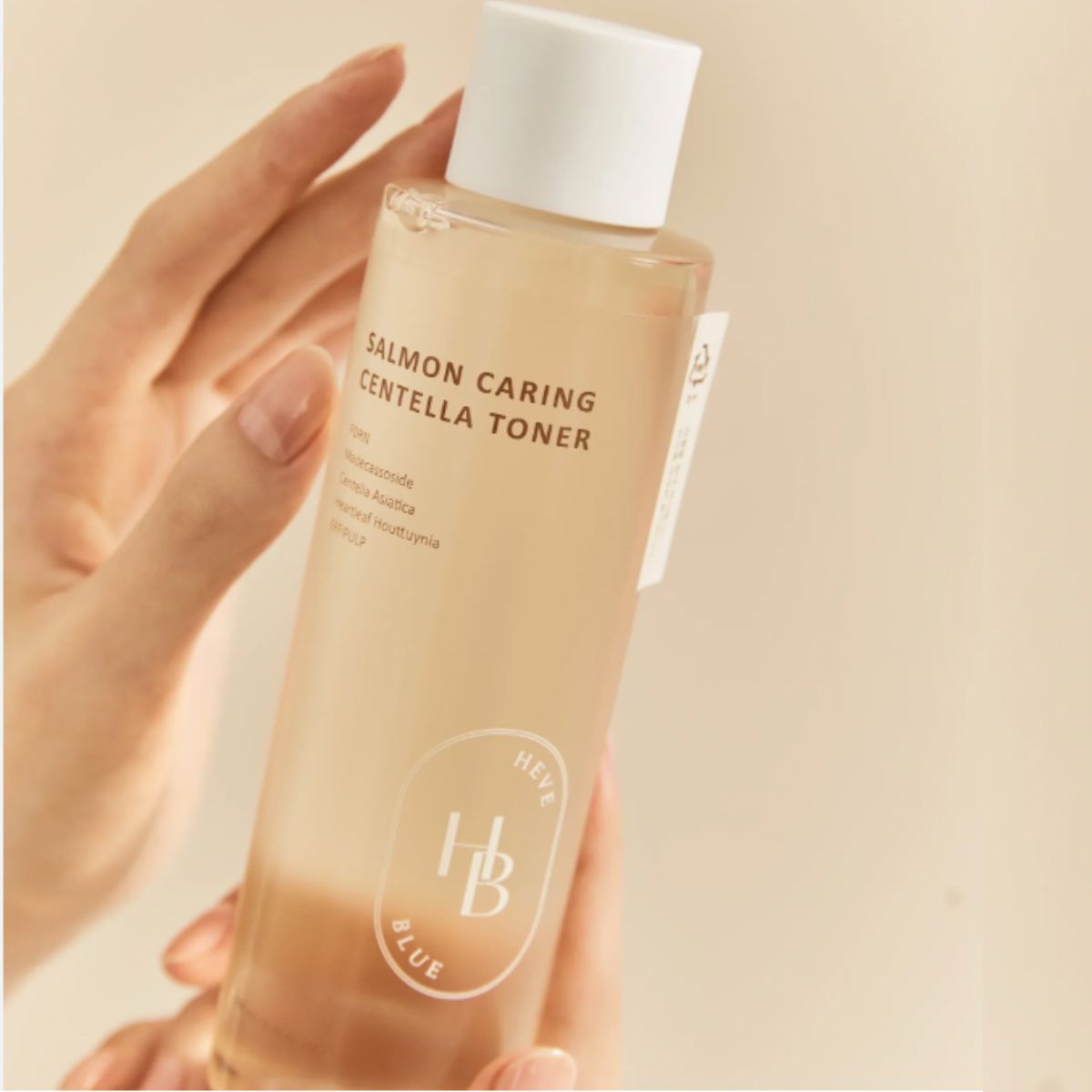 Heveblue Salmon Caring Centella Toner is an ultra-hydrating and soothing toner thanks to a powerful blend of 29,400 ppm salmon caviar extract and 830,000 ppm centella asiatica extract.
