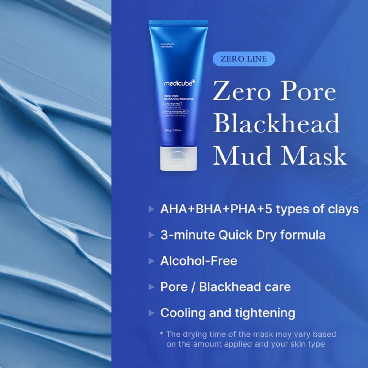 Zero Pore Blackhead Mud Mask est un masque à l’argile hypoallergénique formulé avec des AHA, BHA et PHA pour nettoyer la peau en profondeur, éliminer l’excès de sébum et désobstruer les pores tout en douceur.
