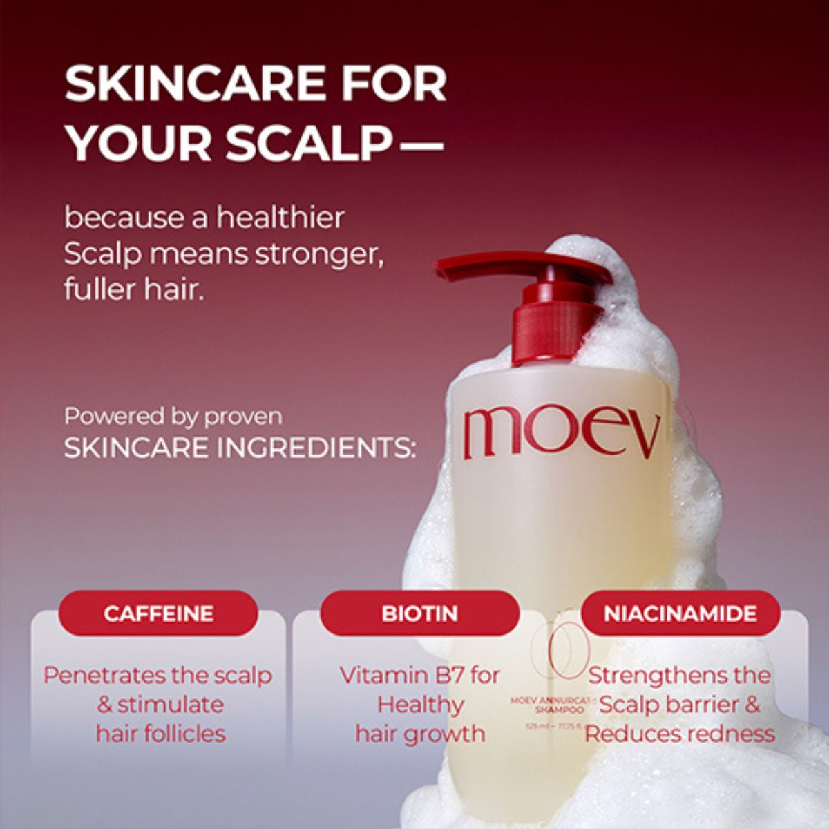 MOEV Annurcatin Shampoo renforce les cheveux et aide à réduire la chute capillaire. Il contient Annurcatin™, qui inclut de l’extrait de pomme Annurca (20 000 ppm), de la biotine et 22 acides aminés pour favoriser des cheveux plus denses, plus résistants et plus sains.