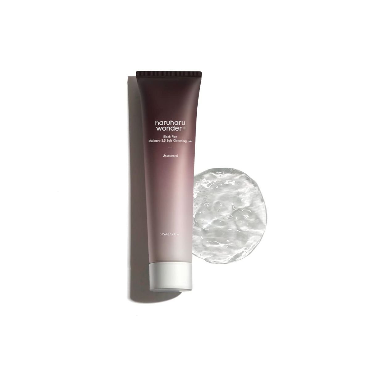 Haruharu Wonder Black Rice Moisture 5.5 Soft Cleansing Gel est un gel nettoyant légèrement acide qui utilise des tensioactifs naturels dérivés de la noix de coco pour éliminer les cellules mortes de la peau et désobtruer les pores.