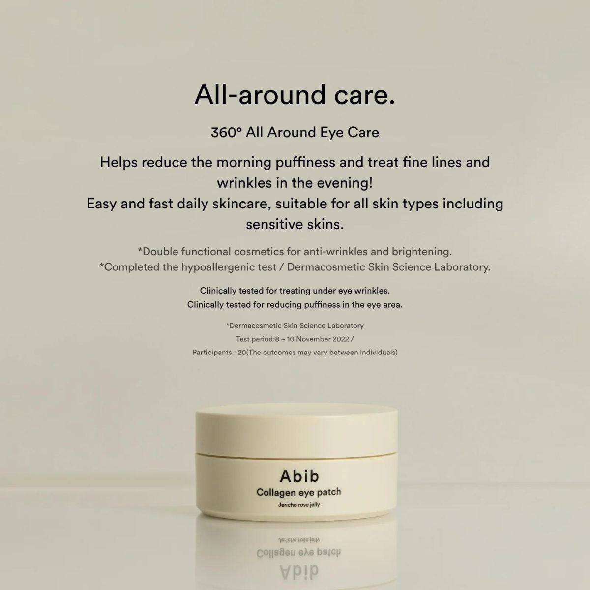 Abib Collagen Eye Patch Jericho Rose Jelly contient 60 patchs hydrogels éclaircissant et raffermissant pour les contours des yeux qui minimisent l'apparence des rides et aident à réduire les poches du matin.