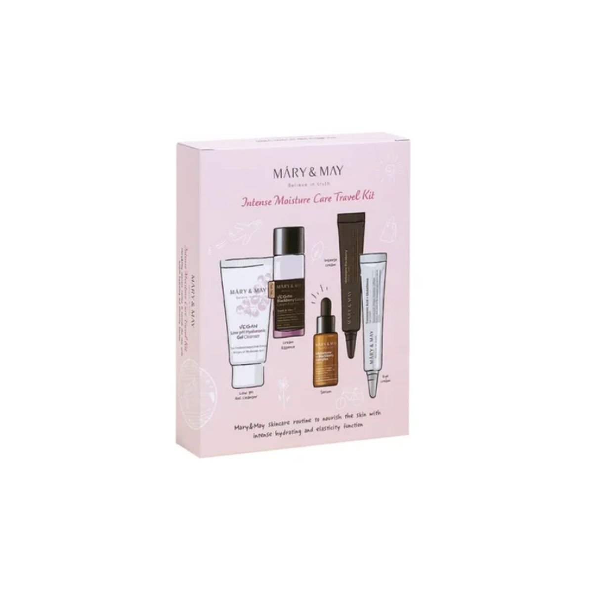 Le Mary&May; Intense Moisture Care Travel Kit contient 5 mini-produits qui aident à nourrir et hydrater la peau. Parfait pour voyager, offrir ou découvrir les produits Mary&May.;