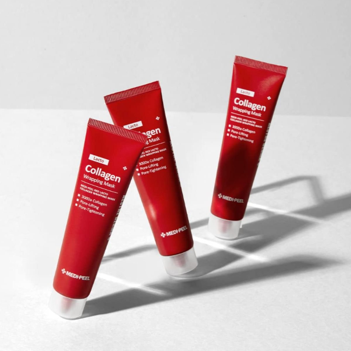Medipeel Red Lacto Collagen Wrapping Mask est un masque riche et anti-âge, conçu pour nourrir et rajeunir en profondeur la peau grâce à la présence de 70,2% de collagène hydrolysé à faible poids moléculaire et aux probiotiques.