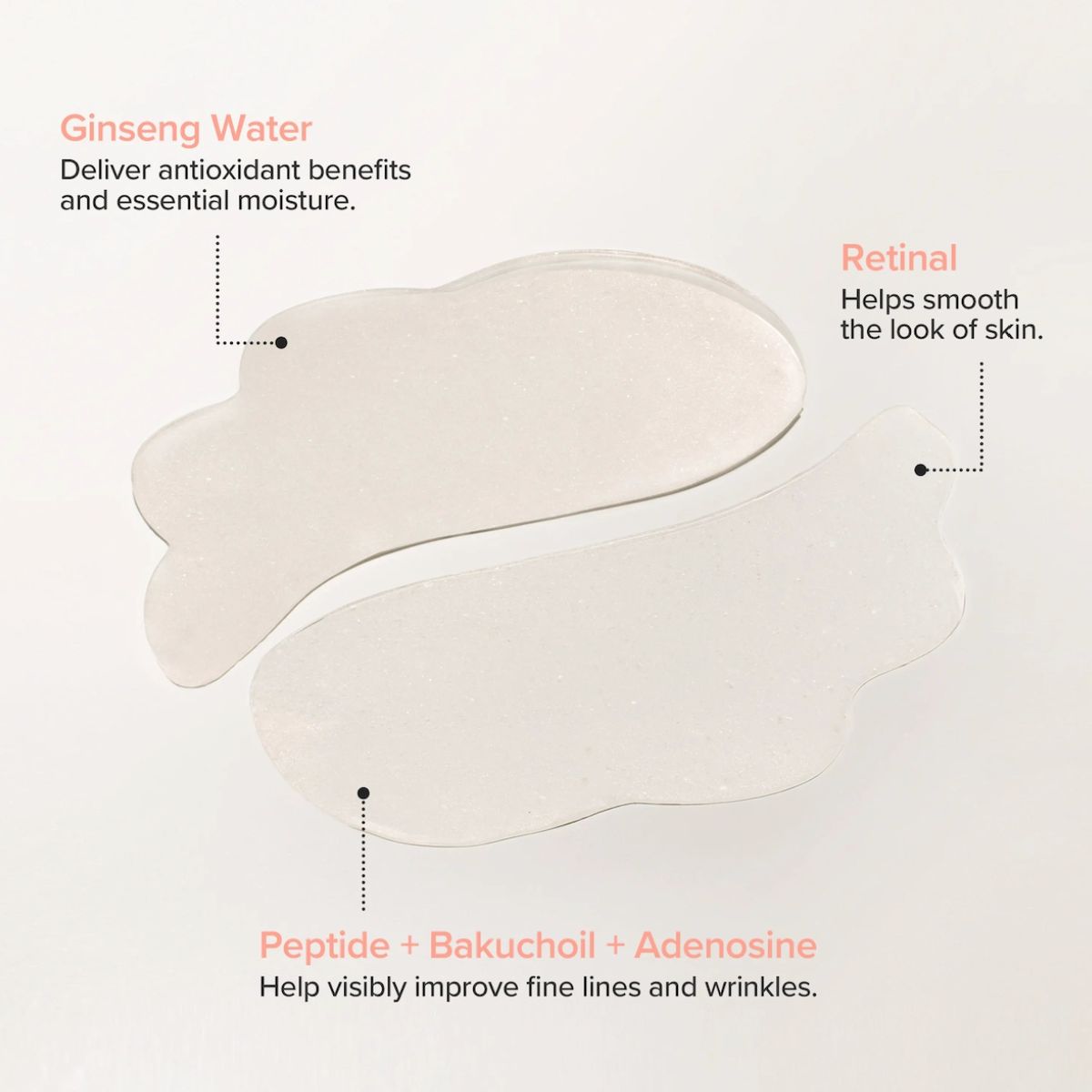 Revive Under Eye Patch Ginseng + Retinal sont des patchs hydrogels rajeunissant infusé d'eau de ginseng, de rétinal pour raffermir visiblement le contour des yeux, améliorer la clarté et lisser les rides, les poches et les cernes.